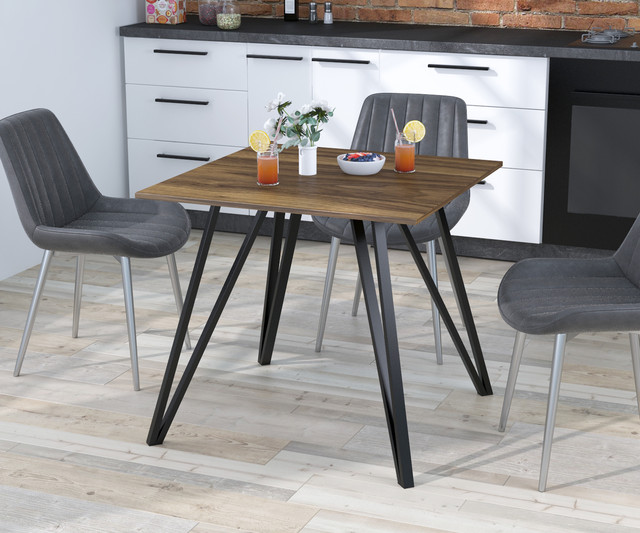 Квадратний обідній стіл Ліма 80-80 від компанії Loft Design — елегантний і стильний предмет інтер'єру. У ньому немає нічого зайвого: невелика стільниця й акуратні та стійкі металеві ніжки. За такий стіл можна посадити до 4 осіб. Його можна використовувати як кухонний стіл вдома або для облаштування обідньої зони в офісі.