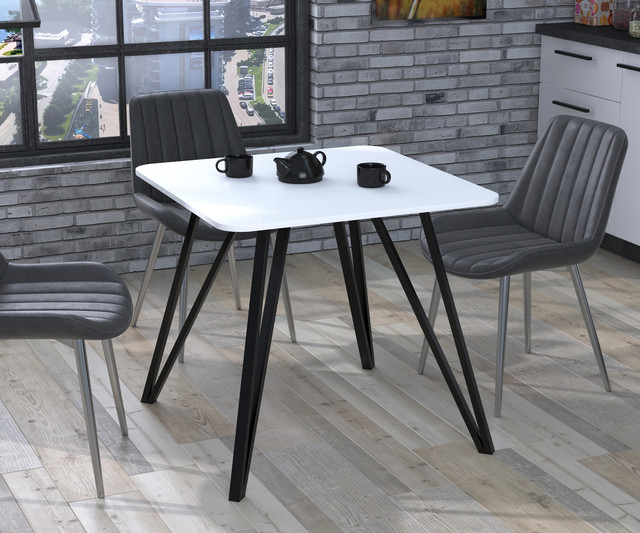 Квадратний обідній стіл Ліма 80-80 від компанії Loft Design — елегантний і стильний предмет інтер'єру. У ньому немає нічого зайвого: невелика стільниця й акуратні та стійкі металеві ніжки. За такий стіл можна посадити до 4 осіб. Його можна використовувати як кухонний стіл вдома або для облаштування обідньої зони в офісі.