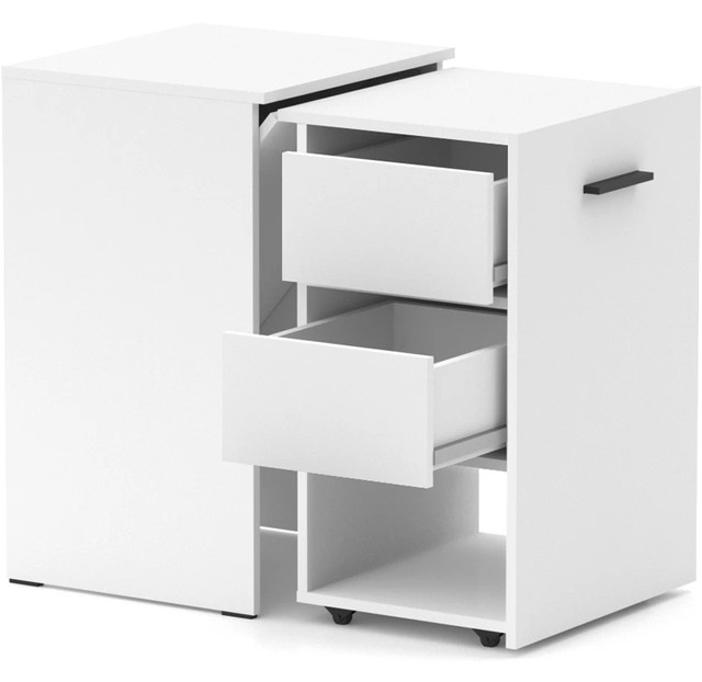 Стіл-тумба трансформер Hobana Ш2 — універсальні меблі, які легко трансформуються зі стильної тумби на повноцінний робочий стіл. У складеному вигляді стіл-трансформер Hobana Ш2 являє собою компактну тумбу. За потреби досить потягнути за ручку на тумбочці та дістати висувну секцію. Завдяки цьому ви отримуєте багатофункціональний або журнальний столик. У розкладеному вигляді на стільниці достатньо місця, щоб виконувати різноманітні завдання: працювати чи вчитися. Адже на столик можна поставити ноутбук, освітлювальні прилади, різні аксесуари та інші елементи, які можуть вам знадобитися. Конструкція складаного столика-трансформера в розкладеному вигляді містить дві шухляди й одну відкриту полицю, які можна використовувати для зберігання різноманітних речей. Складайте туди книги, журнали, підручники, канцелярське приладдя та інші предмети.