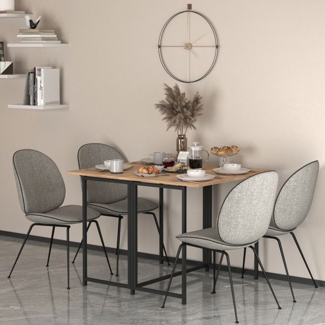 просте складання та розбирання — стільниця складається навпіл, що істотно мінімізує площу, що займаний столом (у такому вигляді виріб можна компактно зберігати в кутку кімнати).