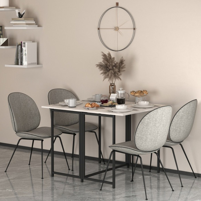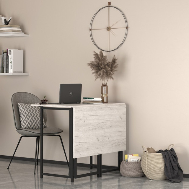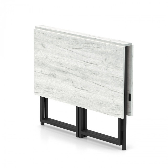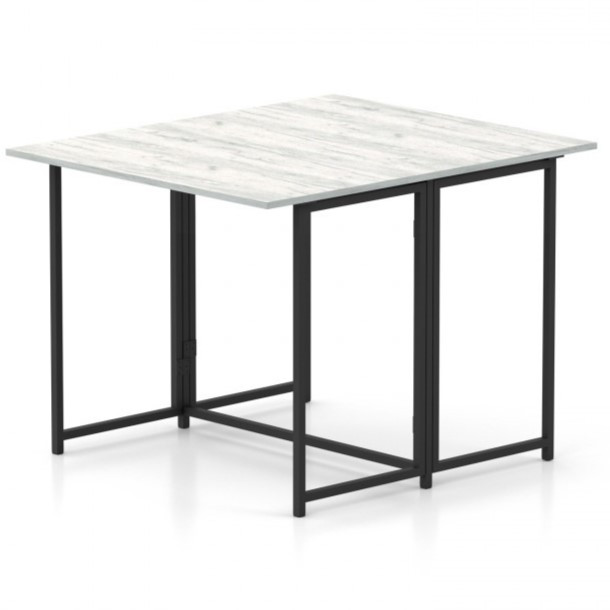 просте складання та розбирання — стільниця складається навпіл, що істотно мінімізує площу, що займаний столом (у такому вигляді виріб можна компактно зберігати в кутку кімнати).