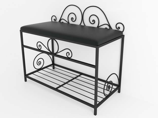 Ця легка модель для затишного невеликого передпокою. Вона розв'язана в лаконічному чорному кольорі. Тому впишеться в різні за стилістикою інтер'єри. У класичний і провінційний, у замковий і сучасний Лофт. Потрібно тільки проявити фантазію й прикріпити тематику вензелів іншими кованними виробами.